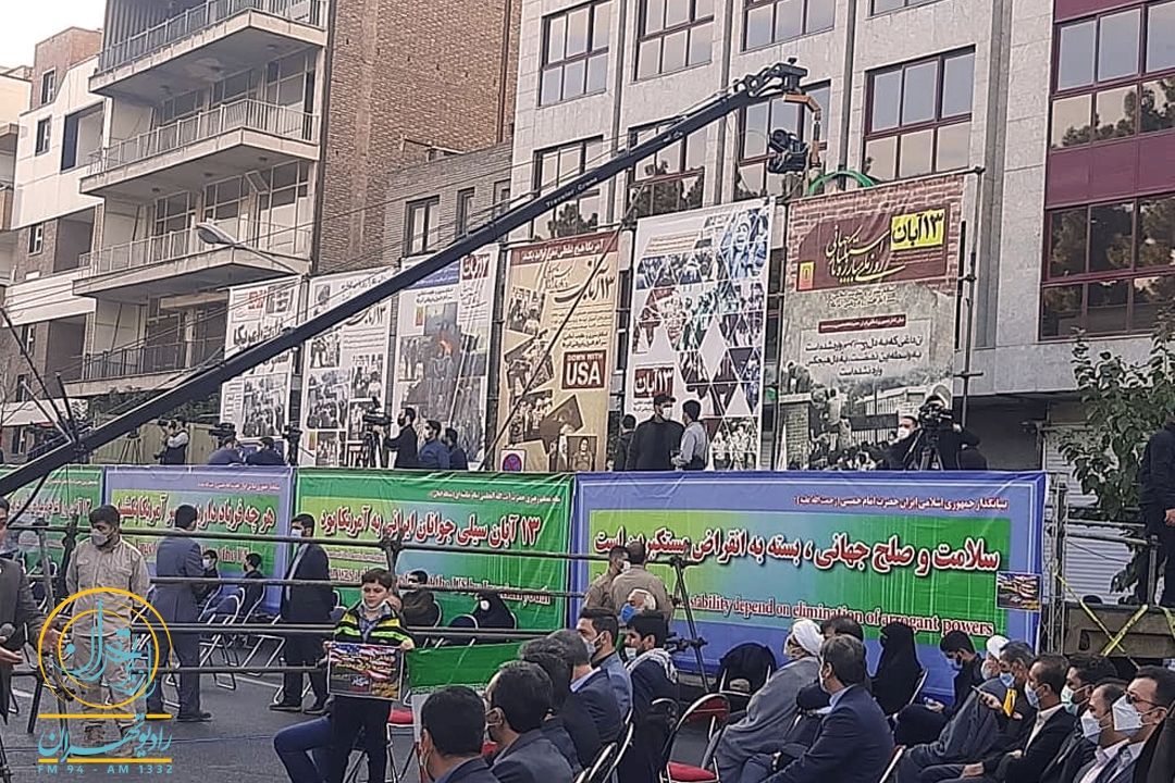 استقرار واحد سیار رادیویی در محل مراسم 13 آبان در تهران و پخش مستقیم بخش هایی از مراسم و سخنرانیها، بخشی از ویژه برنامه«غروب سلطه» از رادیو تهران بود.