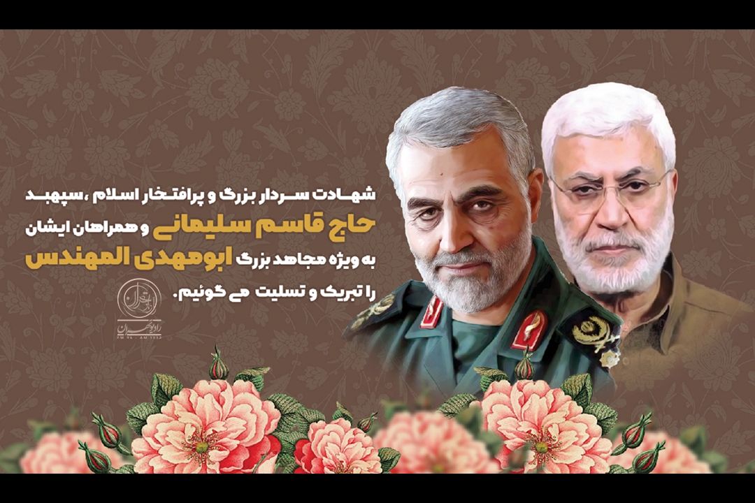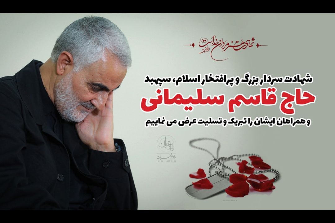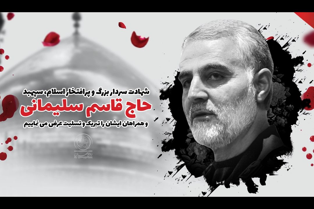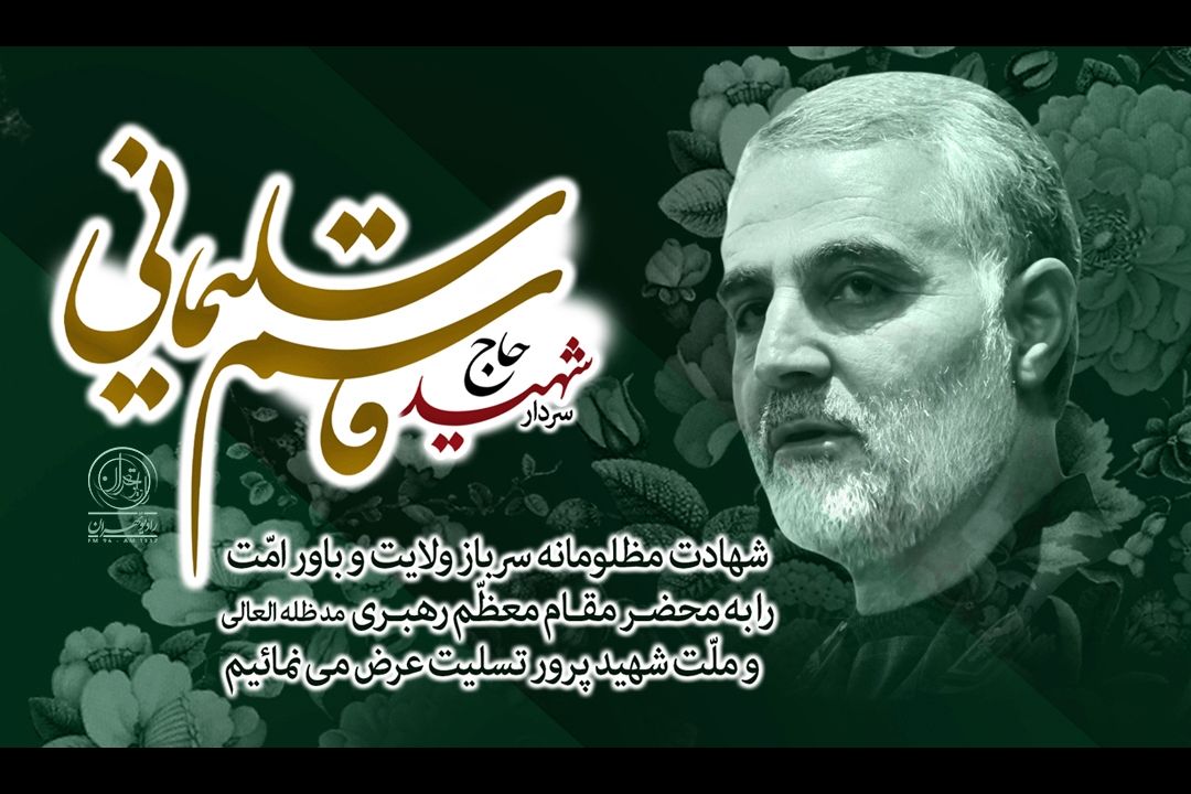 حاج قاسم سلیمانی فرمانده خستگیناپذیر جبهههای حق علیه باطل سحرگاه روز جمعه 13 دیماه در حمله پهباد آمریكایی به خودروی حامل وی در اطراف فرودگاه بغداد، شهد شیرین شهادت را سر كشید و به یاران شهیدش پیوست.