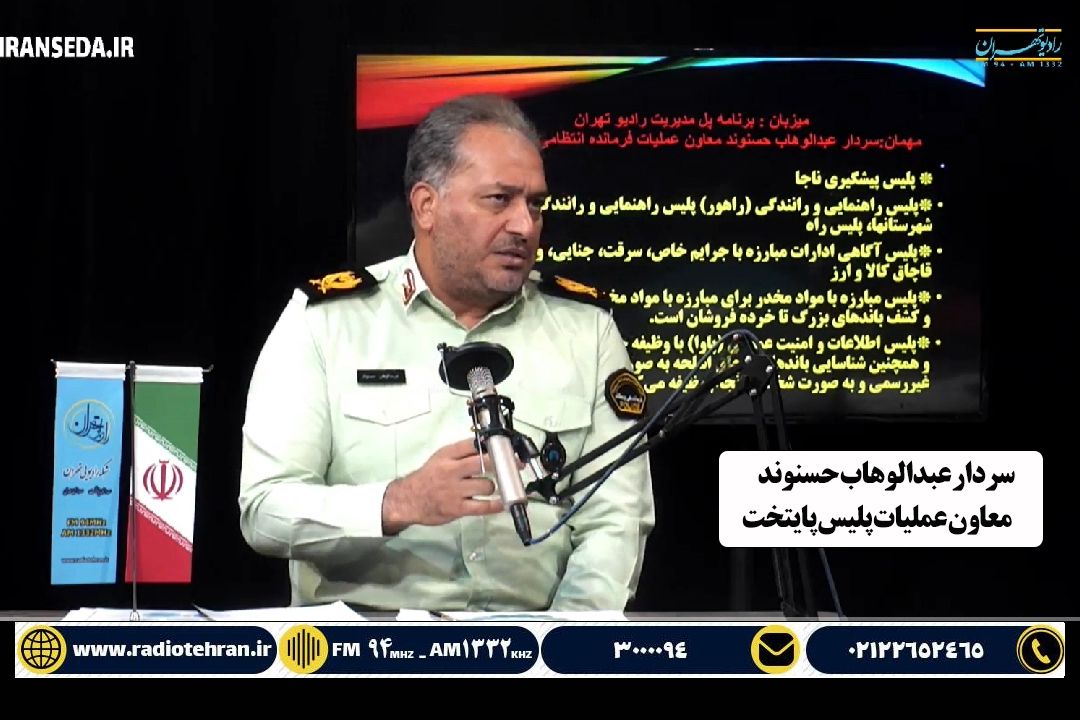برنامه پل مدیریت روز چهارشنبه 18 مهر با حضور سردار عبدالوهاب حسنوند معاون عملیات پلیس پایتخت بر روی آنتن رادیو تهران رفت.