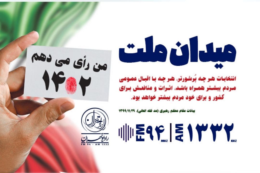 مجموعه گرافیكی پیش رو با عنوان «میدان ملت» ویژه دوازدهمین دوره انتخابات مجلس شورای اسلامی و ششمین دوره انتخابات مجلس خبرگان رهبری تقدیم كاربران سایت رادیو تهران میشود.