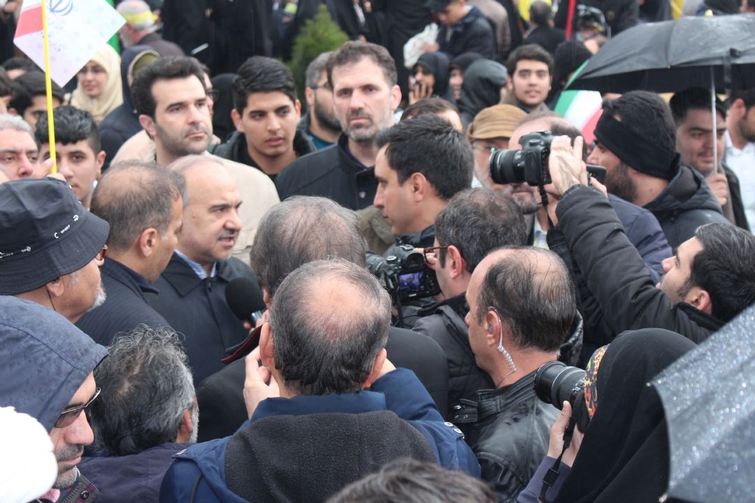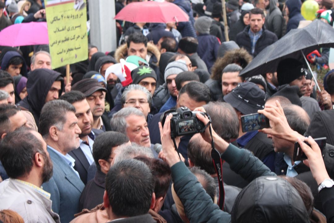 حضور عوامل ویژه برنامۀ خیابان انقلاب از مسیر راهپیمایی چهلیمین جشن انقلاب اسلامی با حضور محسن هاشمی رفسنجانی و مسعود سلطانی فر وزیر ورزش